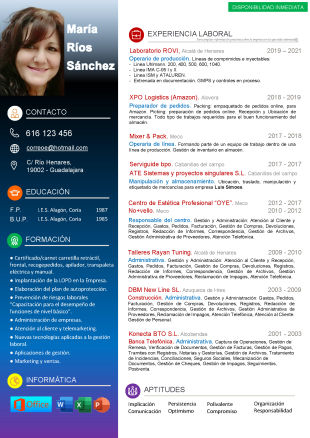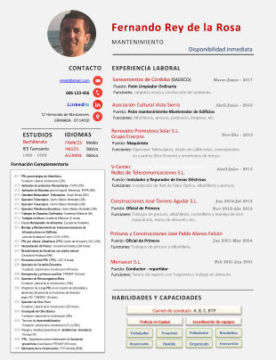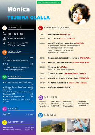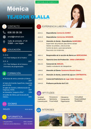 Currículum con entre 9 y 12 experiencias laborales o de 9 a 12 títulos formativos, con fotografía.